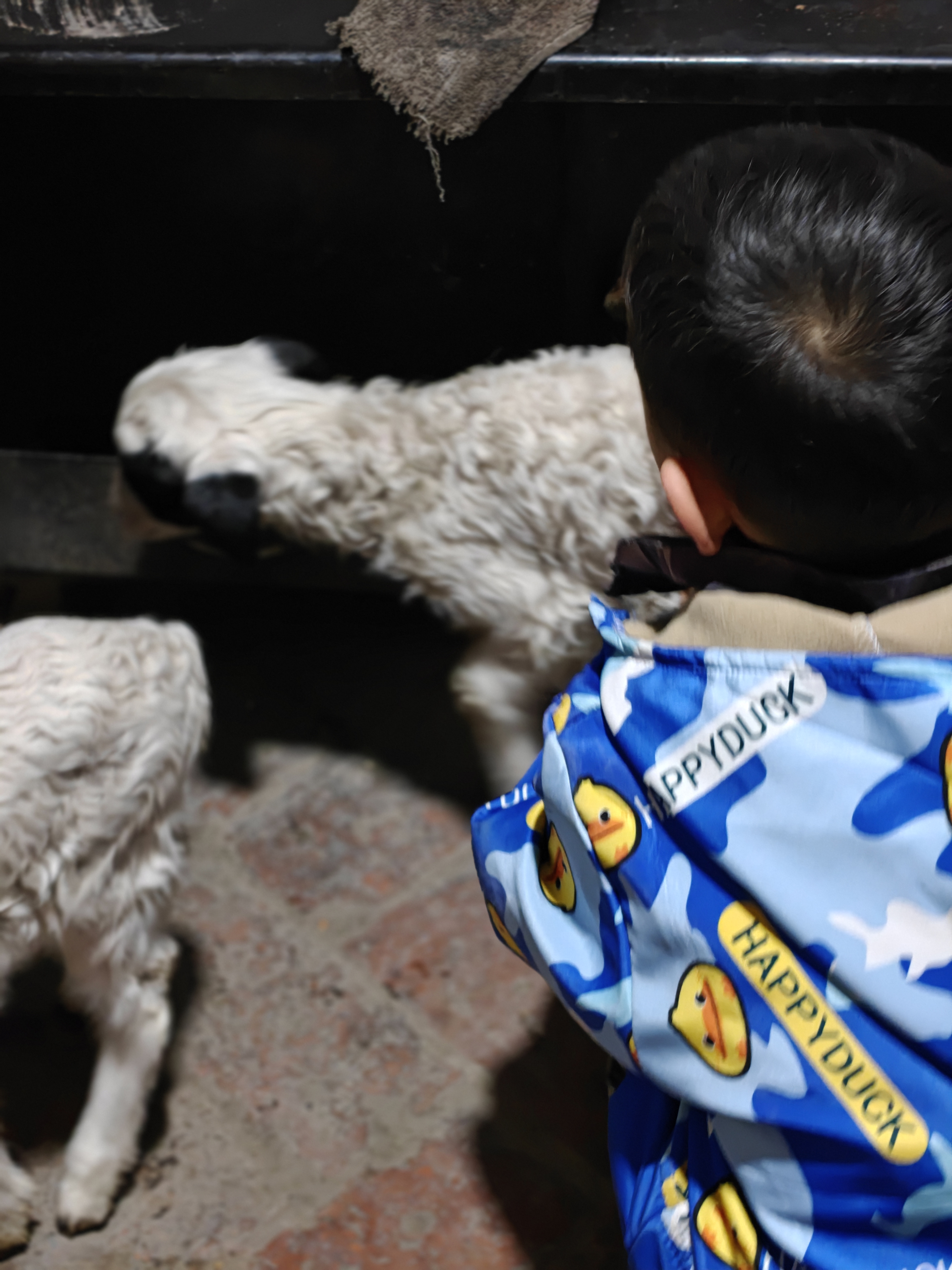 儿子蹲在地上看小羊,眼睛亮晶晶的,问能不能抱一只回家。我告诉他火车上不让带羊,他瘪瘪嘴,转身又去追那只跑得最慢的羔子。