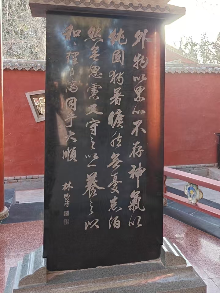 碑文上刻着:”外物以累心不存,神气以纯固独著,旷然无忧患,泊然无思虑,又守之以一,养之以和,和理日济,同乎大顺。”这是林则徐留给武威的珍贵墨宝,原作现藏于武威市博物馆。文字出自三国嵇康的《养生论》,讲的是修身养性、返璞归真的道理——不为外物所累,保持心神纯一,才能达到和顺的境界。一个禁烟禁毒、虎门销烟的硬骨头,在被贬伊犁的途中路过武威,却留下这样一段关于”养心”的文字,挺有意思。