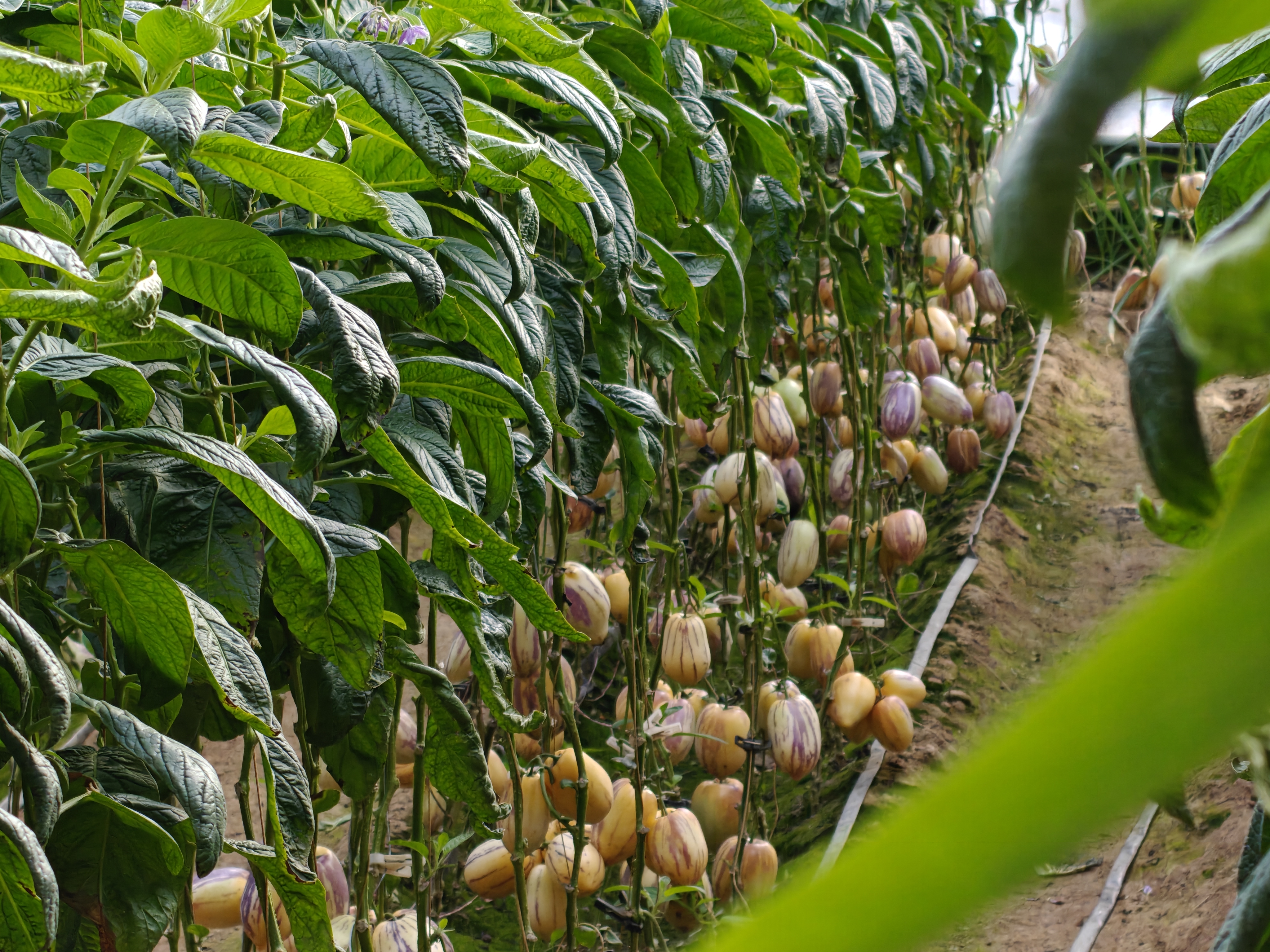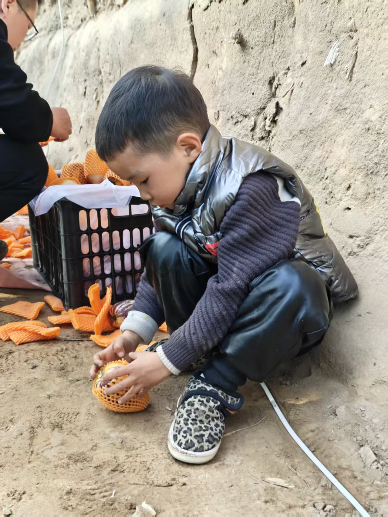 逛完沙漠,舅舅又带我们去他的大棚。原来是种人参果的——我之前只在西游记里听说过,没想到真能吃到。大棚里湿热闷人,一排排人参果挂在藤上,黄澄澄的像小灯笼。舅舅说这些果子过两天就要发往外地,让我们随便摘,想带走多少都行。儿子一听来劲了,搬了个小凳子坐在包装箱旁边,学着工人的样子,把套好网套的人参果一个个码进箱子里,一层摆满了再铺一层软纸,认真得让人不敢打扰。我也摘了几个,在大棚里直接掰开吃了——果肉金黄,汁水直流,甜中带点淡淡的奶香。儿子装箱间隙抬头看我吃得满嘴是汁,也忍不住伸手要了一个,蹲在箱子旁边边吃边干活,比做作业专注多了。