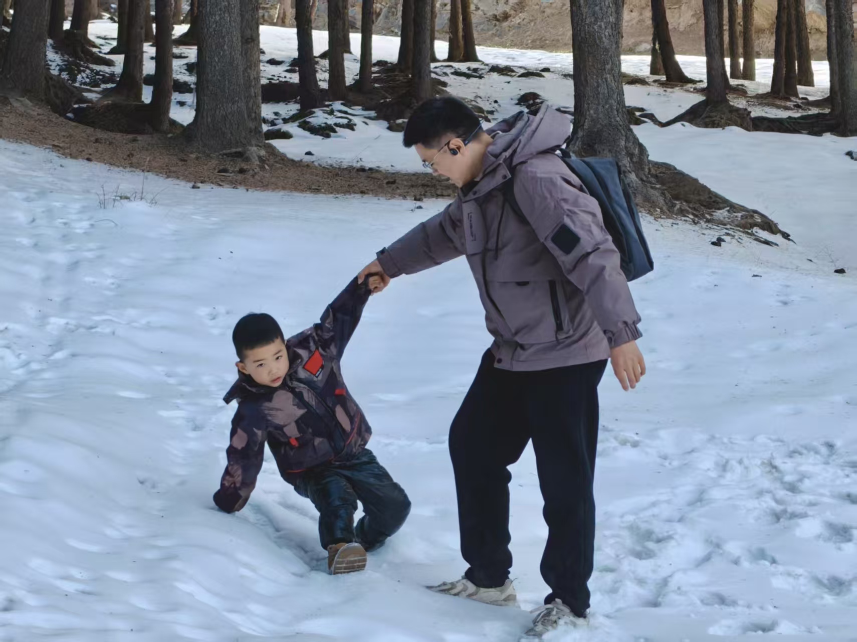 从石窟出来我们又去了趟大红沟景区,在天祝藏族自治县境内。车子盘山而上,海拔越来越高,窗外的景色也从黄土坡慢慢变成了雪山。到了山顶,视野突然开阔——连绵的雪山就在眼前,白得刺眼,阳光照在上面反射出耀眼的光。空气稀薄,走几步就有点喘,但那种壮阔感让人忘了高反。儿子第一次看到真正的雪山,兴奋得在雪地里打滚。我站着没动,就看着那些山峰,觉得人真挺渺小的,大自然面前什么都不算。